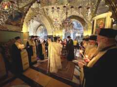 Συνιερούργησαν Αγιοταφίτες Αρχιερείς και Αρχιμαδρίτες και ο Αρχιδιάκονος π. Μάρκος. Έψαλλε ο Πρωτοψάλτης του Πανιέρου Ναού της Αναστάσεως διάκονος π. Ευστάθιος. Συμμετείχαν μαναχοί και μονάζουσες.Η Αγιοταφιτική Αδελφότης εύχεται υπέρ αναπαύσεως της ψυχής αυτού εν χώρα ζώντων.