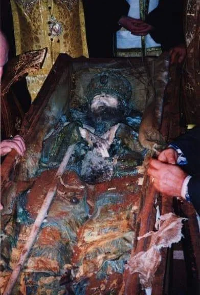 The incorrupt relics of St. John of Shanghai and San Francisco, uncovered 27 years after his repose.