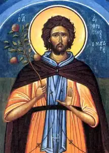 Εὐφροσύνης μέτοχος τῆς οὐρανίου, γεγονὼς Εὐφρόσυνε, τῇ ἰσαγγέλῳ σου ζωῇ, ὤφθης Ἀγγέλων ἰσότιμος, μεθ’ ὧν δυσώπει, ὑπὲρ τῶν τιμώντων σε.