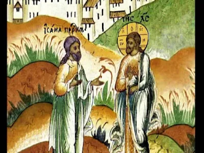 (Δύσκολες λέξεις & φράσεις της υμνογραφίας)Ο Πρόδρομος είναι: "άγγελος" δηλαδή αγγελιαφόρος της έλευσης του Χριστού"ἐκ στειρωτικῶν ὠδίνων", δηλαδή γεννημένος από ωδίνες στείρας γυναίκας (της Ελισάβετ)το πιο ενδιαφέρον (δική μας υπόθεση) …
