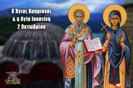 Σήμερα, 2 Οκτωβρίου, η Αγία μας Εκκλησία τιμά τη μνήμη του Ιερομάρτυρος Κυπριανού και της Παρθενομάρτυρος Ιουστίνης.
