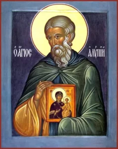 Μιμητὴς τοῦ ἱεροῦ εὐαγγελιστῆ καὶ πρώτου εἰκονογράφου Λουκᾶ, ἀναδείχθηκε ὁ ὅσιος πατέρας μας Ἀλύπιος ὁ σπηλαιώτης. Αὐτὸς ὁ μακάριος, θαυμαστὰ εἰκονογραφοῦσε τὶς μορφὲς τῶν ἁγίων, ἐνῷ ταυτόχρονα καὶ τὴν ψυχή του στόλιζε μ’ ὅλες τὶς ἀρετές. Ἔτσι ὁ Θεὸς τὸν ἀξίωσε νὰ γίνει γιατρὸς θαυματουργὸς ψυχῶν καὶ σωμάτων.